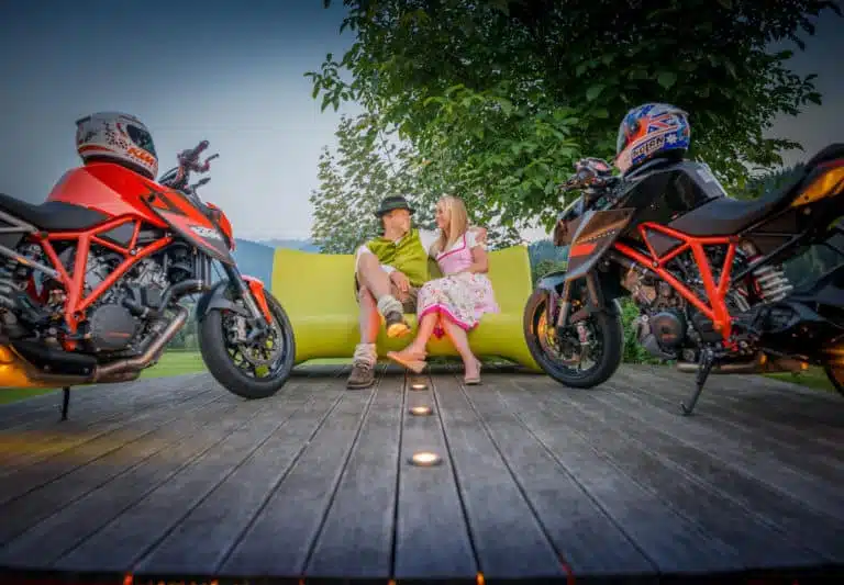 More than anything, we are passionate motorbikers ourselves. Paved tracks, white roads, even mud – we know the most beautiful motorbiking routes and look forward to sharing our knowledge with you. Hotel Berghof is at 1,100 metres in Ramsau am Dachstein, surrounded by Dachstein and Tauern mountains, as well as the National Park Gesäuse in the east. It is an impressive region, ideal for motorcyclists, that will make many a biker’s heart beat faster. From our place, Austria’s bends and switchbacks reach out in all four directions.